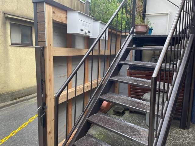 サイディングを設置しおわり、ポストの設置になります。