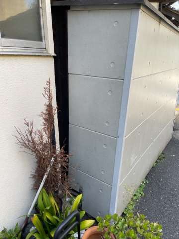 境内横にある外壁に車が衝突し歪んでしまったという事で、上記の内容の施工依頼をいただきました。