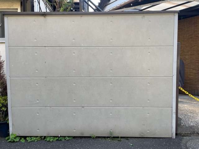 外側のサイディングはまだ綺麗ですが、もともとトタン板で作っていた壁に上貼りをしている状態なので木部分やトタン板部分などの経年劣化、それに加え全体的な歪みが生じておりました。